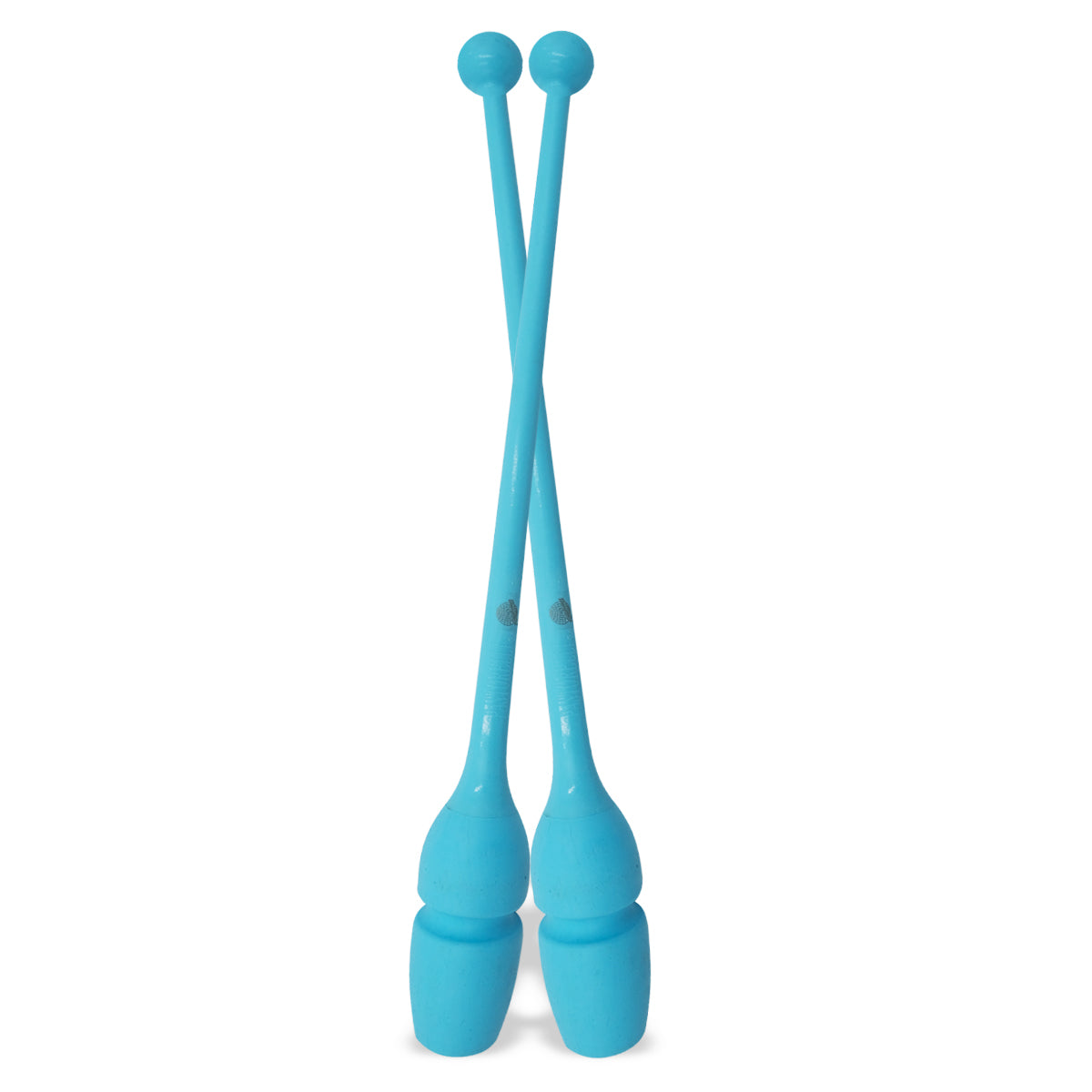 Connectable clubs plastic/rubber. The cubs may have either an abrasion or a mark that does not meet current regulations, for this reason they are not FIG approved and are recommended for not FIG competitions and training. The article is new. Except for the FIG logo the article has no other defects.