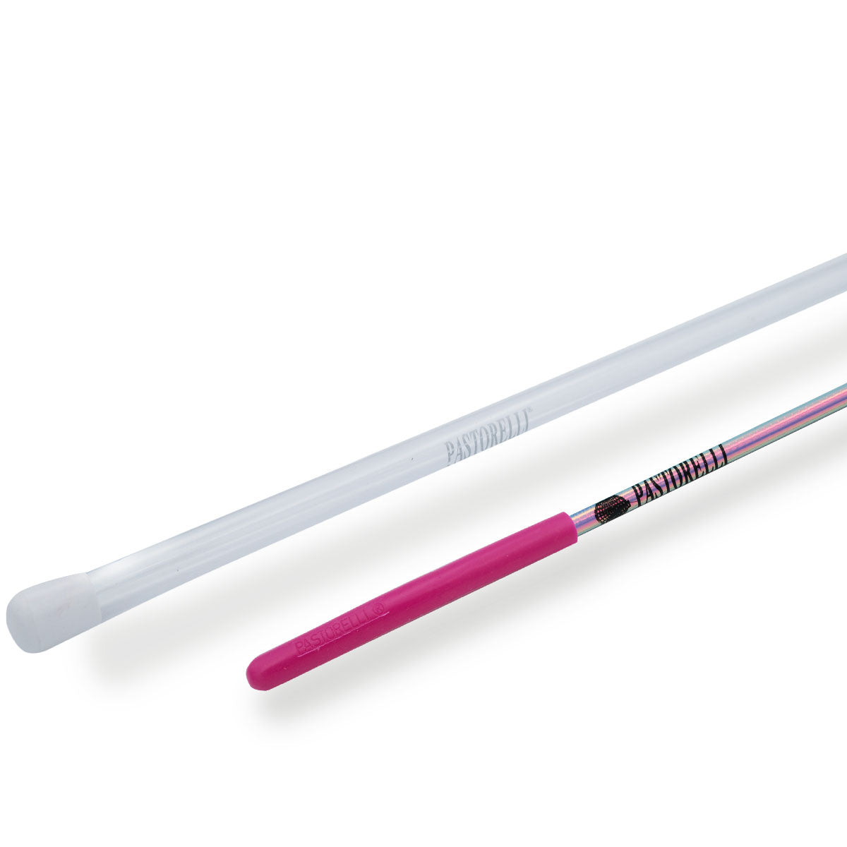 Bacchetta per nastro con pistone rotante e impugnatura in gomma. FIG approved. Codice FIG: 03517. Lunghezza: 59,50 cm . Bacchetta in fibra di vetro rinforzata con carbonio rivestito esternamente di glitter. La parte metallica fissa è realizzata in lega di alluminio. Il pistone rotante è interamente in acciaio e contiene un cuscinetto che facilita la rotazione del pistone. Viene venduto con la sua comoda custodia.