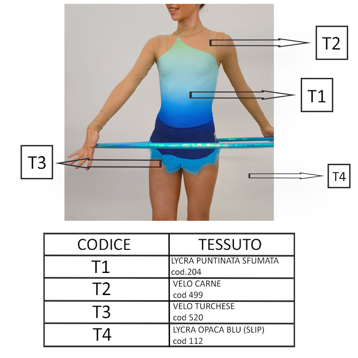 Body in lycra e velo glitter impreziosito da 100 pietrine di diverse misure. Il body è aggiornato a norma del codice di punteggio internazionale FIG. La misura elaborata dalla Guida alle taglie corrisponde a un body con vestibilità da gara, quindi preciso al centimetro. Per una vestibilità più comoda, consigliamo di scegliere la taglia superiore. Clicca qui per consultare la tabella taglie