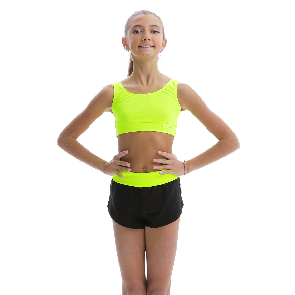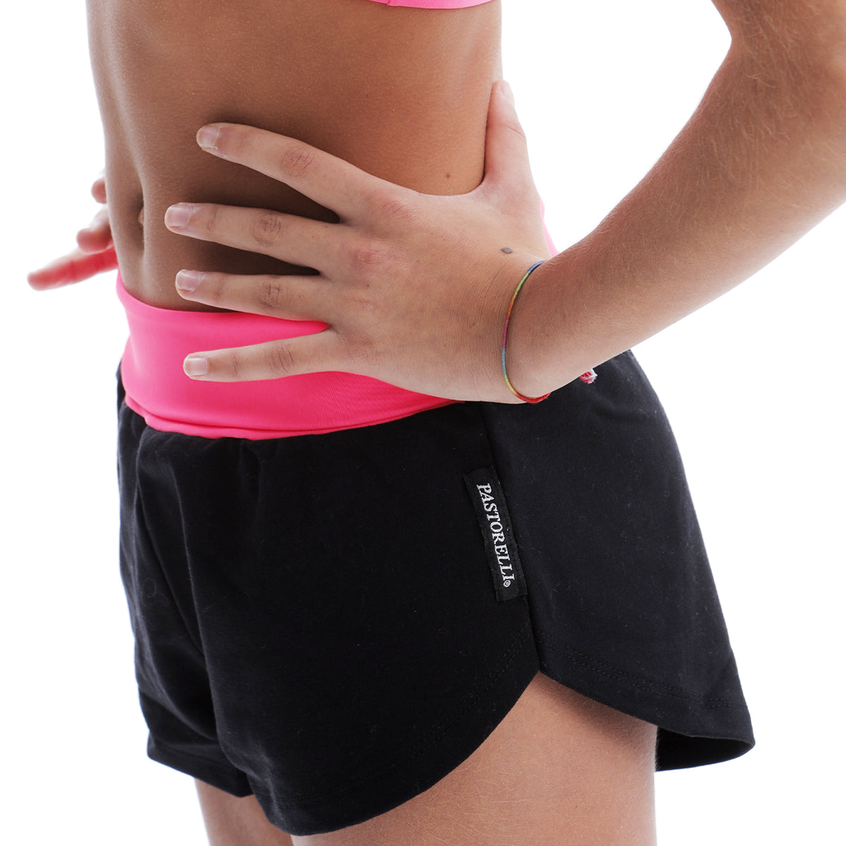 Shorts sgambato in cotone garzato con fascia dai colori fluo. Composizione: parte colorata 74% PL/26% EA – parte nera 91% PA/9% EA. CLICCA QUI per consultare la tabella taglie